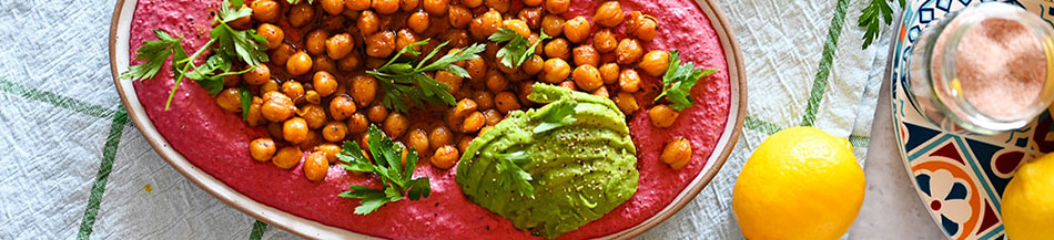 Spoj cvekle, limuna, jogurta i tahinija daje pun ukus koji balansira između zemljanog, osvežavajuće kiselog i orašastog. Uz dodatak začinjenih leblebija, maslinovog ulja i tankih listića avokada, dobijate zalogaj koji zadovoljava i oko i nepce.