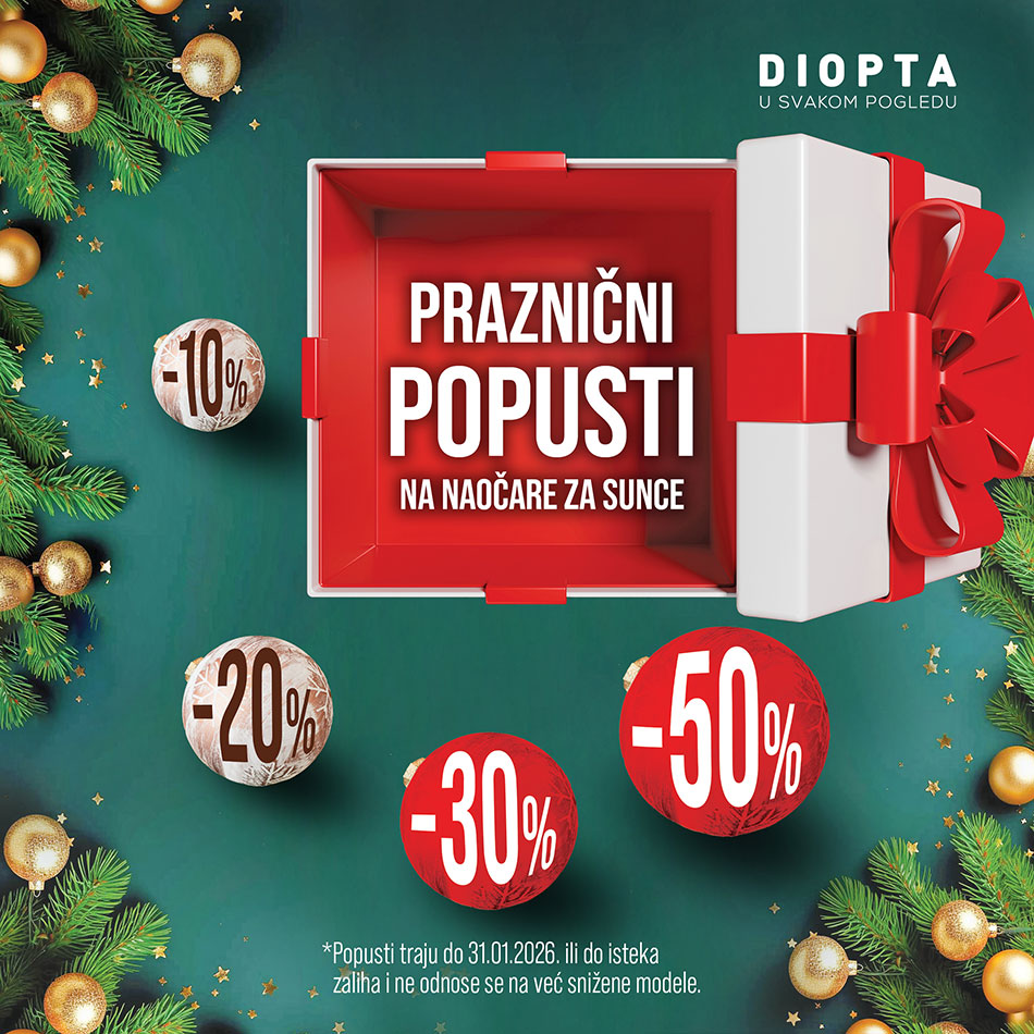 Zbog velikog interesovanja, odlučili smo da produžimo akciju – praznični popusti do čak 50% na naočare za sunce traju do 31. januara.