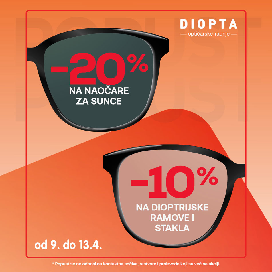*Popusti se ne odnose na kontaktna sočiva, rastvore i već snižene proizvode.